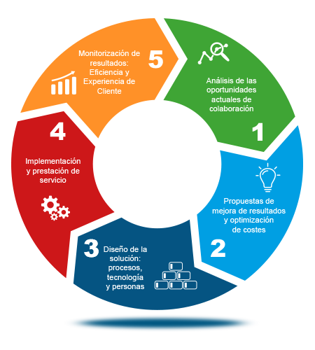 Una estructura de profesionales para responder a los nuevos desafíos de negocio como un colaborador estratégico con servicios Business Process Outsourcing integrados en su cadena de valor, compartiendo objetivos, retos y riesgos a través de servicios profesionales desde el Outsourcing de procesos y operaciones hasta el Outsourcing de profesionales en su compañía “on site”